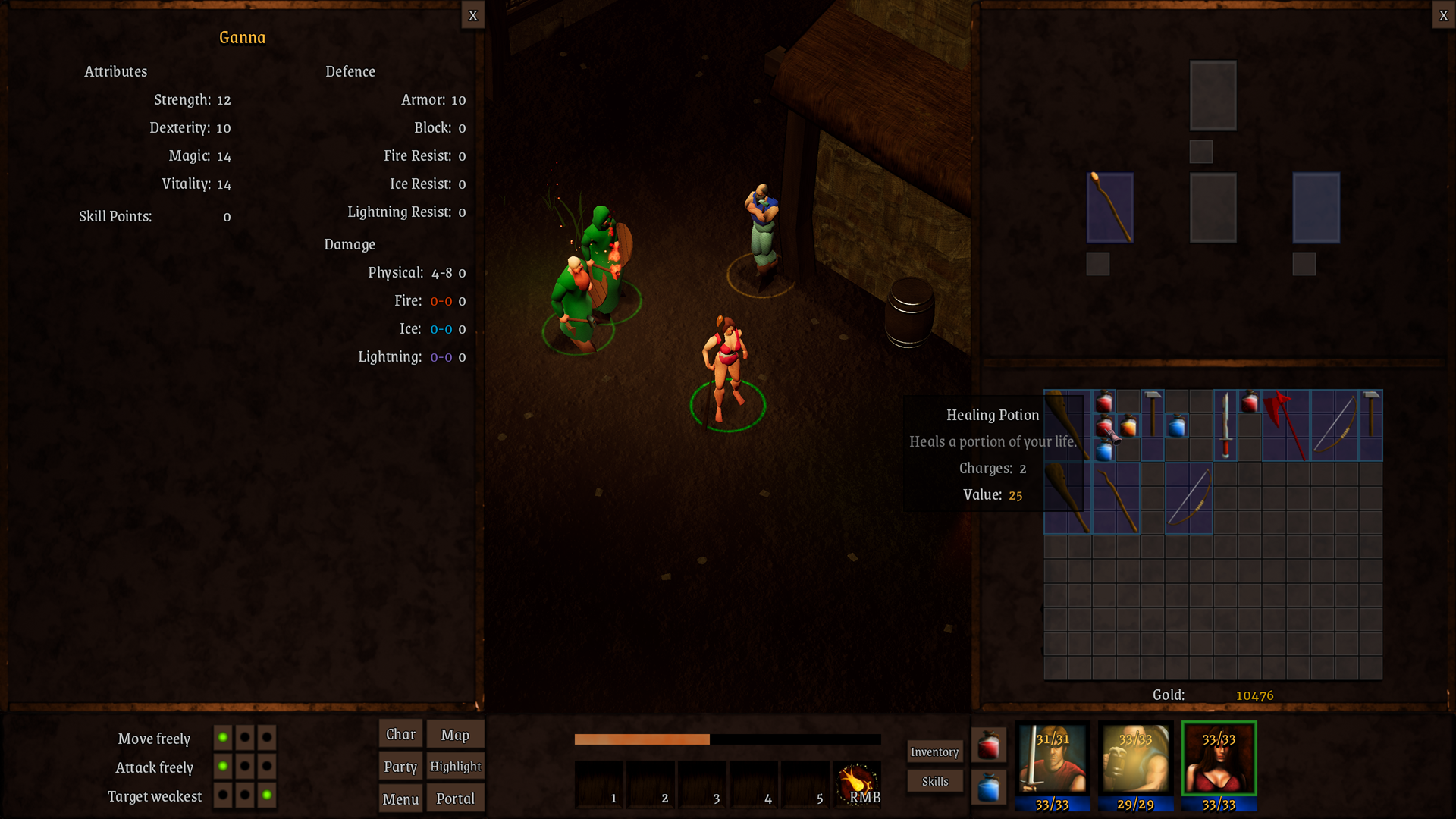 Had some technical issues off the start. Settings UI had a bug when it came to going fullscreen, it didn't list my native resolution either. Game crashed loading the mines the first time around. Once I was in the mines it went smoothly, until I went to level 2 and got smoked immediately. Seemed like quite a ramp in goblin stats. Maybe I was supposed to grind the first level some more? I like the pre-rendered old school feel you're going for.